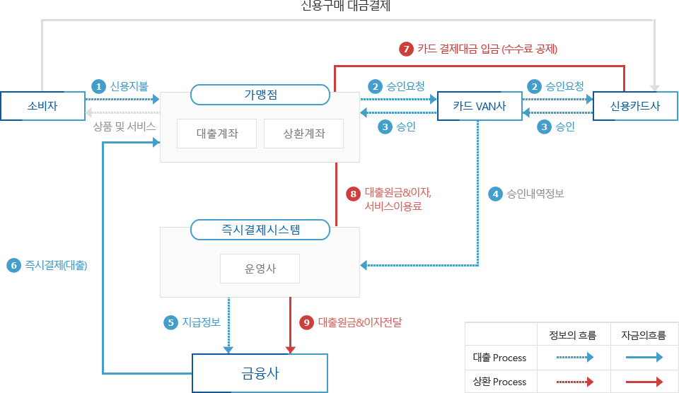 신용카드 결제일 차이가 있어 이로 인한 결산과정에서 어려움을 겪고 있는 가맹점들을 위해 당일 매출에 대한 당일 결산정보를 제공하고, 운영사에는 가맹점의 당일 입금정보와 매출정보를 제공하여 매출대금 입금누락을 방지 함으로서, 안정적인 정산업무를 할 수 있도록 지원합니다. 매출정산시스템(즉시결제시스템) 도입을 통해 가맹점 관리 전산화, 리스크 및 정산 인력 최소화, 미수금 해결 및 사업 확장이 가능합니다.